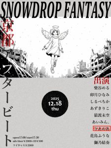« すべてのイベント SNOWDROP FANTASY 12月18日 « 夜に奏 DJバー » act: 柴谷める 卯月ひなみ しるべちか あずきりこ 猿渡未空 あいみん。 花鳥ふうな 獅乃結奏 OPEN 17:00 START 17:30 大人¥2500 大学生¥2000 高校生以下¥1000 (各1D込) 小学生以下¥500(1Dのみ) ツイキャス ¥2000 international visitor ¥500 Passport presentation + Google カレンダー+ iCal エクスポート 詳細 日付: 12月18日 イベントカテゴリー: ライブ