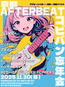 « すべてのイベント このイベントは終了しました。 コピバン忘年会 11月30日 « Tokotto&艶企画 君と架けるはじまりの橋 » act: 肋骨 Nicovana アメノジャク MUNA SEA Fullthrottle Zoomer ハジマイトカシマシ RED HOT CHICKEN PEPPERS OPEN 16:00 START 16:30 ADV/DOOR 3000(1drink in) + Google カレンダー+ iCal エクスポート 詳細 日付: 11月30日 イベントカテゴリー: ライブ