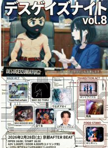 « すべてのイベント このイベントは終了しました。 デスゲイズナイト vol.8 2月28日 « DJバー Resonant Pulse » act. デスゲイズマツイシ WAY DO THRU YasoNoCurtain WHO WONDER WHO 立てる ウエダアオイ 三戸キャップ(O.A.) 転換Act. ホントアイドル 飛鳥 Food はじめぇし OPEN16:00 / START16:30 adv 3,000円/door 4,000円(1D別) + Google カレンダー+ iCal エクスポート 詳細 日付: 2月28日 イベントカテゴリー: ライブ