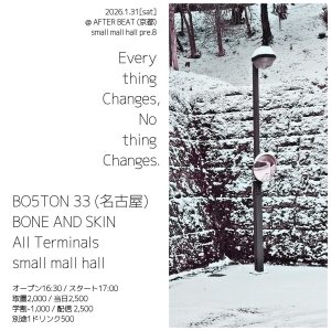 « すべてのイベント このイベントは終了しました。 small mall hall pre. EverythingCanges, NothingChanges 1月31日 « grind vibes Vol.2 CLASSICS » act: small mall hall BO5TON33 BONE AND SKIN All Terminals OPEN 16:30 START 17:00 ADV2000/DOOR2500(+1drink) 学割-1000 ツイキャス2000 + Google カレンダー+ iCal エクスポート 詳細 日付: 1月31日 イベントカテゴリー: ライブ